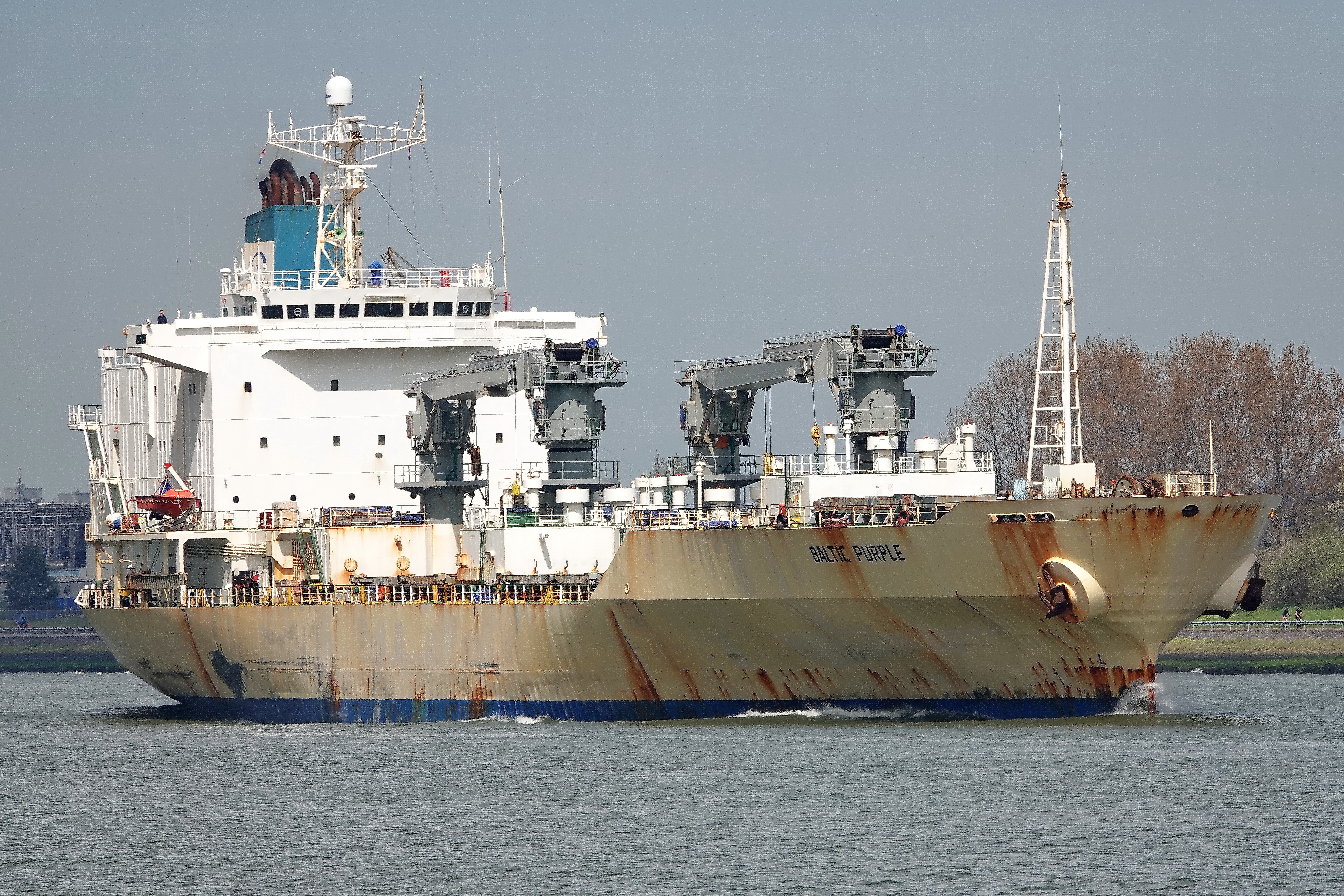 Het schip Baltic Purple is een koelvrachtschip, gebouwd in 1996, en vaart momenteel onder de vlag van de Bahama’s.